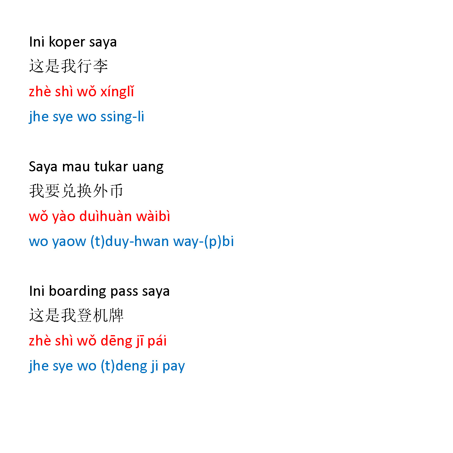 Bahasa Mandarin untuk Traveling / Bepergian / Melancong / Jalan-jalan