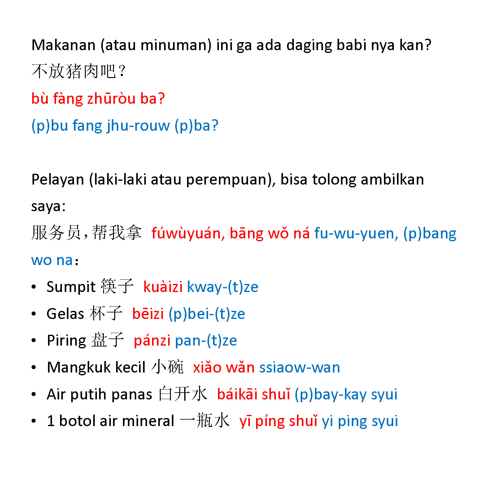 Bahasa Mandarin untuk Traveling / Bepergian / Melancong / Jalan-jalan