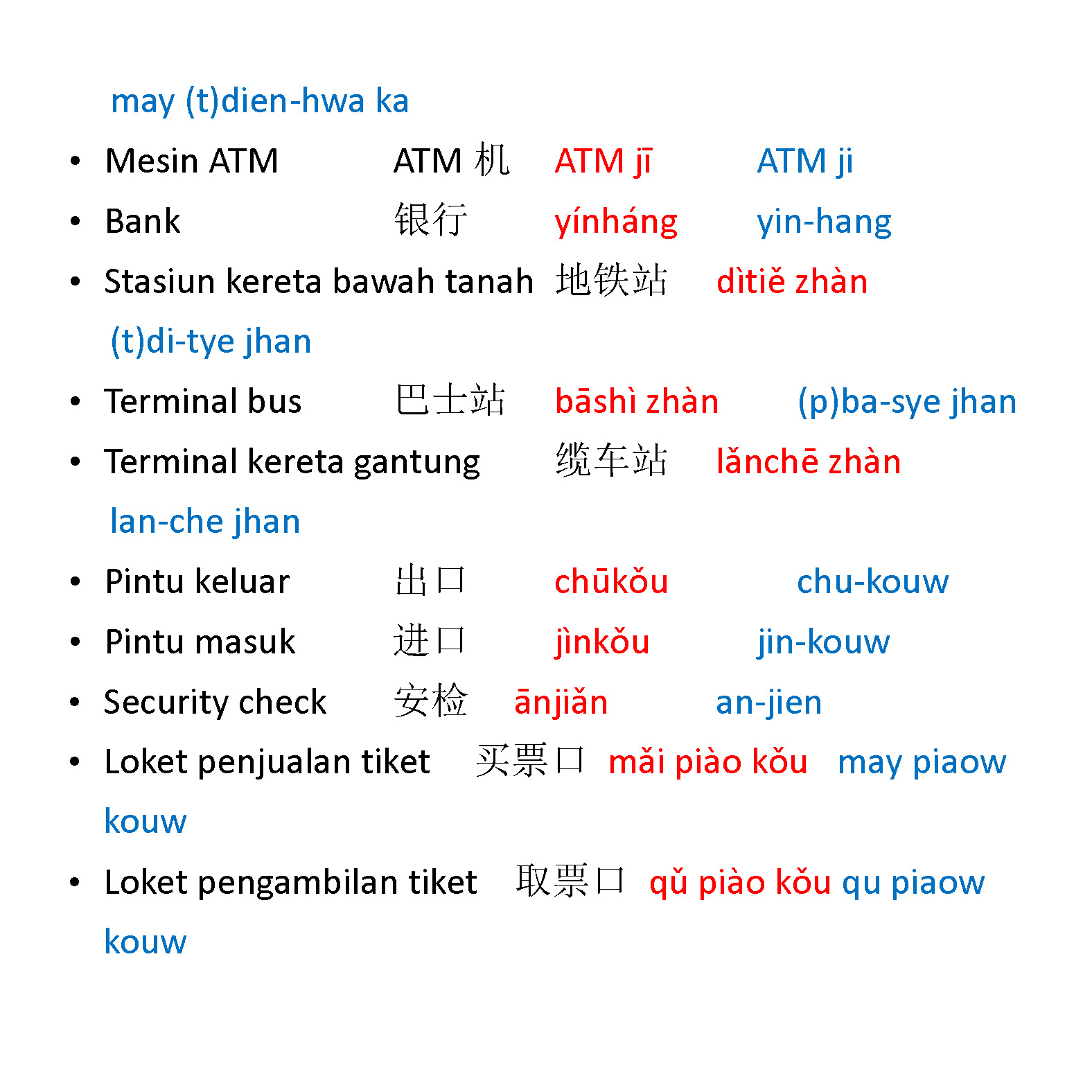 Bahasa Mandarin untuk Traveling / Bepergian / Melancong / Jalan-jalan