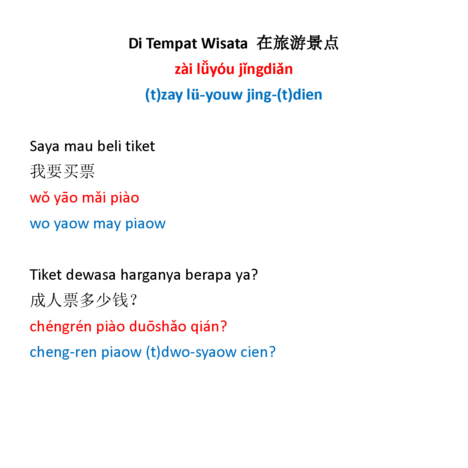 Bahasa Mandarin untuk Traveling / Bepergian / Melancong / Jalan-jalan