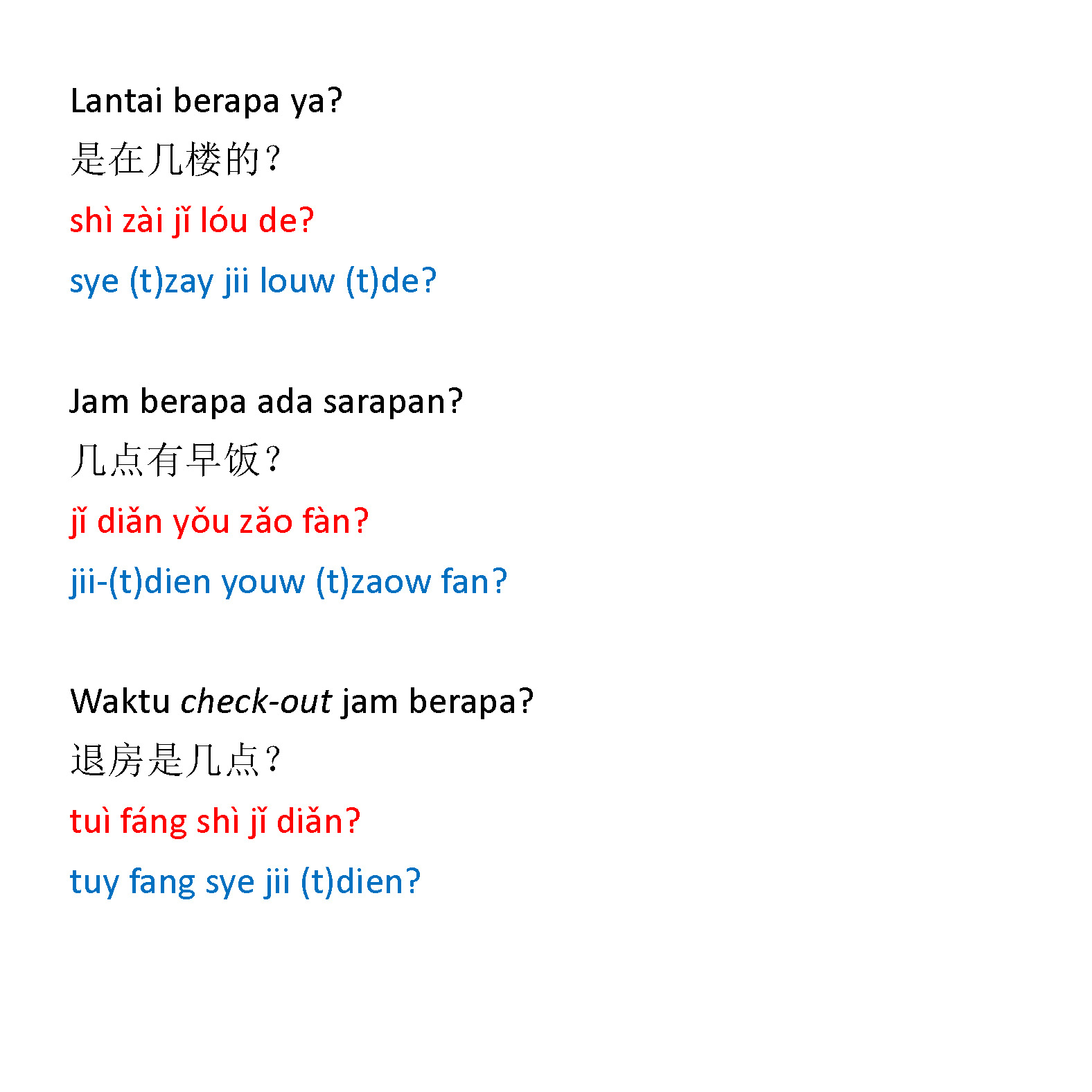 Bahasa Mandarin untuk Traveling / Bepergian / Melancong / Jalan-jalan